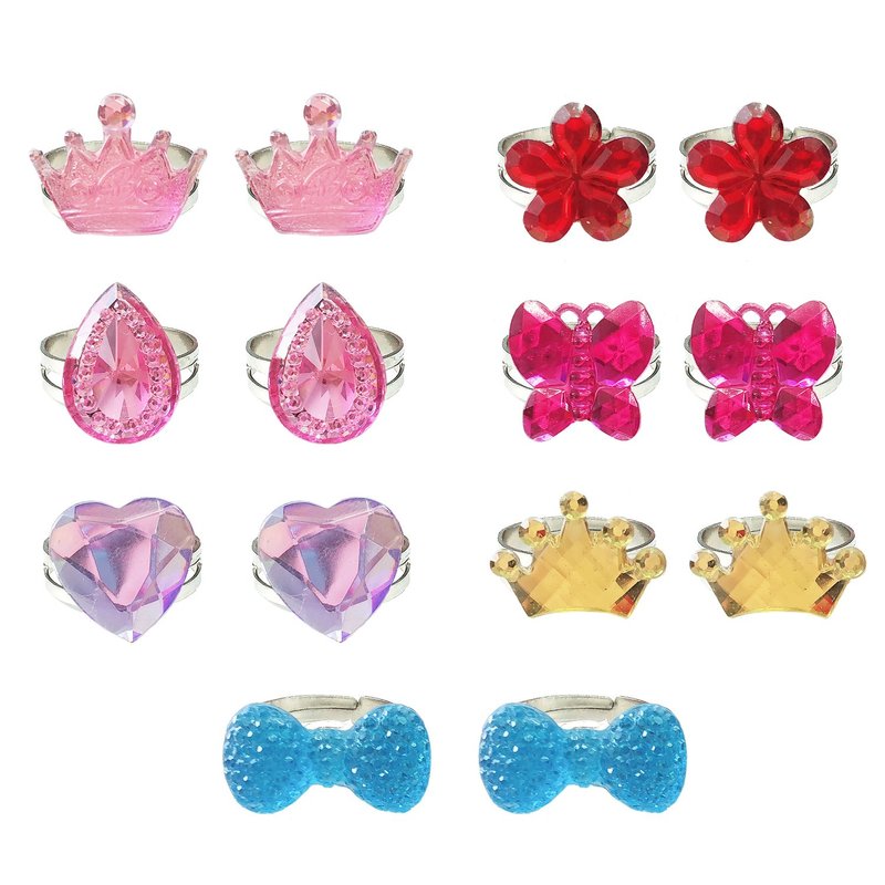 Elesa Miracle 28pcs Children Kids Little Girl Shiny Clip-on Earrings and Adjustable Jewelry Rings in Box, Girl Pretend Play Earrings and Dress up Rings