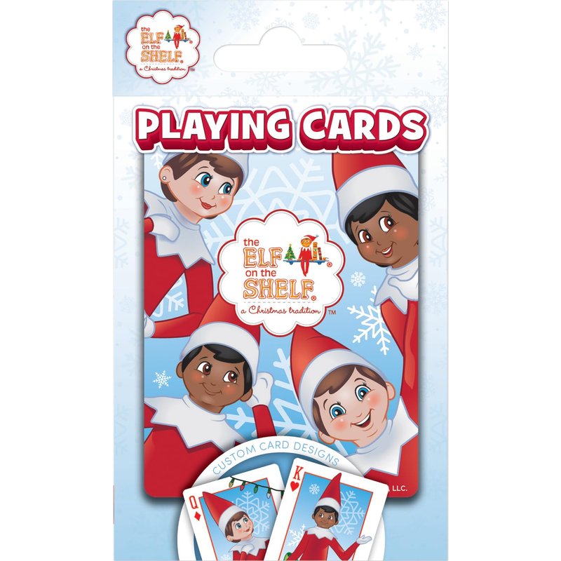 These Elf on the Shelf playing cards are the perfect deck for any Scout Elf fan! Each standard deck contains 52 cards and 2 jokers. Card-back designs feature the Elf on the Shelf logo. All face cards and jokers have detailed, Elf on the Shelf designs. Officially licensed and approved Elf on the Shelf playing cards. Have your Elf a Merry Christmas!