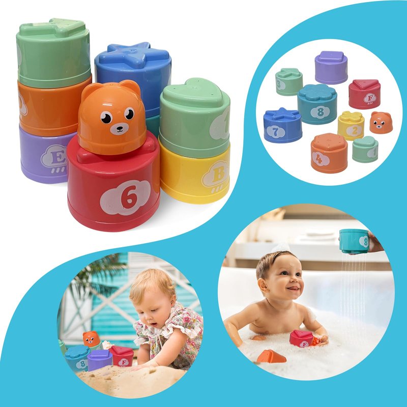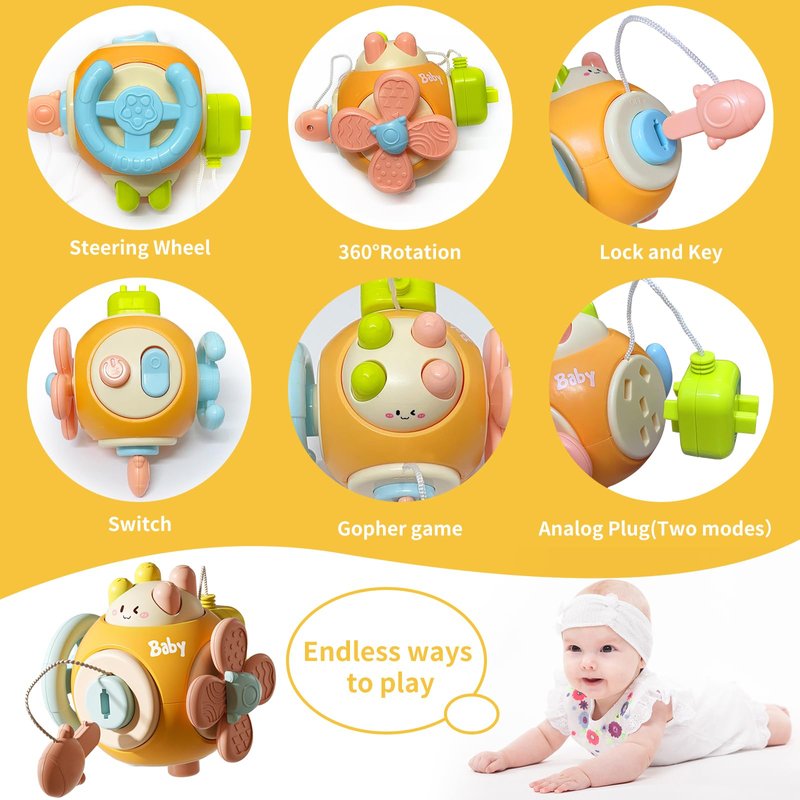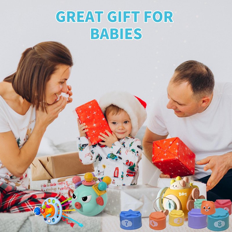 - Education Developmental Toys: Different toys cultivate different skills,the busy cube, silicone pull string and teething toy are promoting the development of fine motor skills and hand-eye coordination, to encourage grasping and reaching. Stacking cups are designed to help your toddler improve shape and color recognition.