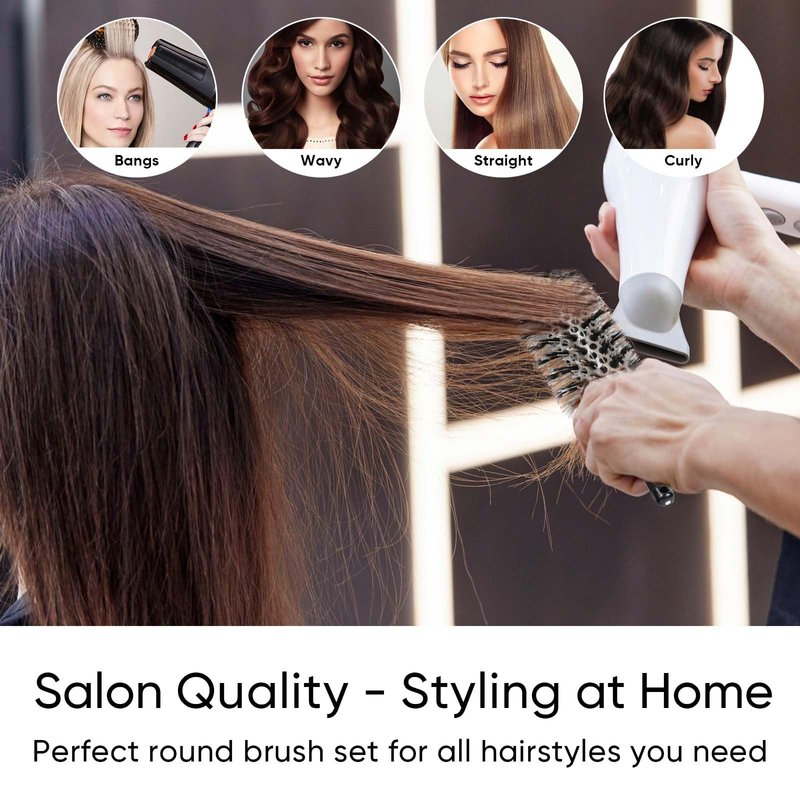 - Reduce Blow Drying Time - With large ventilation space inside the aluminum tube, this round hair brush set for blow drying allows a large amount of hot air to pass through quickly, and makes your hair evenly heated. Easy to care curly, thick, thin, dry hair for women, men and children.