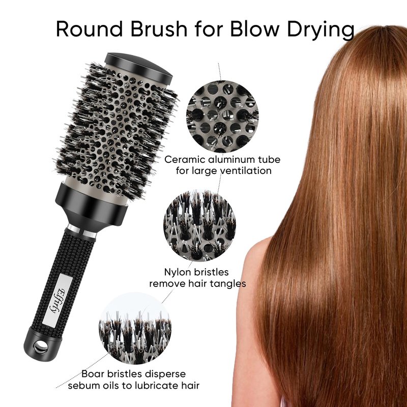 Roller blow dry Round Brush for Women Our boar bristle Ionic Tech ceramic round hairbrush, with large ventilation space inside the aluminum tube, have instant heat distribution, significantly reducing the blow drying time. The round hair brush for blow out can be used to create a variety of styles, such as bangs, fluffy roots, curls hair, etc. Boar Bristle Hairbrush for styling curling hair Boar bristle also can disperse the natural oils from the scalp, and make your hair smooth and shine. Large ventilation space inside the aluminum tube, allows a large amount of hot air to pass through this cepillos para secar cabello profesionales quickly, and makes your hair evenly heated. Easy to care curly, thick, thin, dry hair for women, men and children. Fit for All Hair Styles Works great on drying and combing all hair styles. this roll hair brush round is suitable for personal use, hairdresser use and gifts for friends.