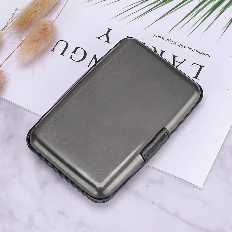 ELFISH RFID Blocking Credit Card Protector Aluminum ID Case Hard Shell Business Card Holders Metal Wallet for Men or Women(Gray