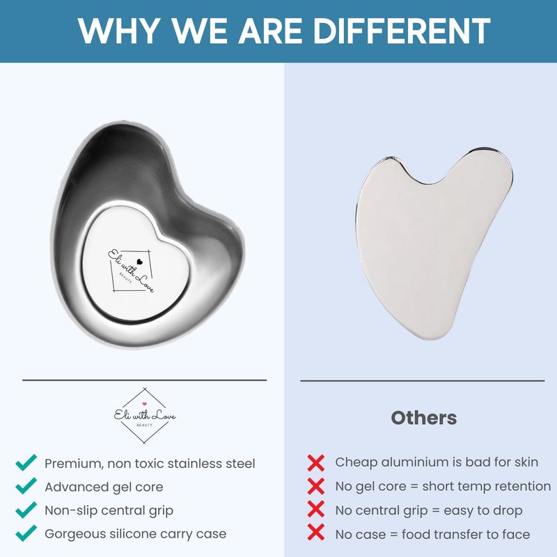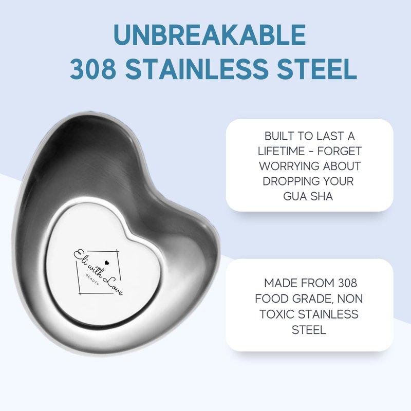 - ๐ UNBREAKABLE STAINLESS STEEL - Unlike others gua sha tools, our stainless steel construction provides you with an ultra smooth Gua Sha which glides gently across your skin. It is built to last a lifetime, so no more worrying about dropping it.