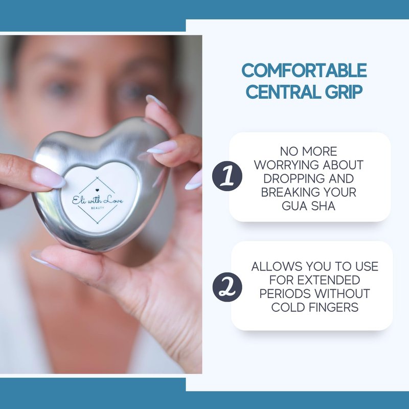 - ๐ NON-SLIP CENTRAL GRIP - No more worrying about dropping and breaking your Gua Sha. This unbreakable steel Gua Sha provides further peace of mind with the central grip which ensures it wonโt slip and allows you to apply the correct amount of pressure. It also helps stop your hands from freezing when the gua sha is cold!
