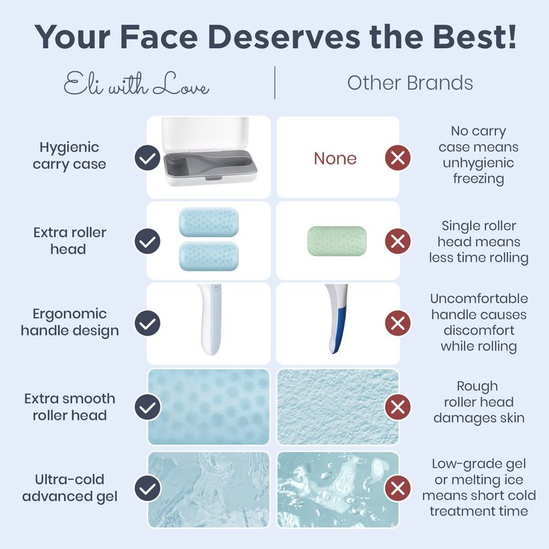 - CARRY CASE FOR STORAGE AND TRAVEL - Crafted from high-quality materials, our ice roller is built to last. The included carry case allows for convenient storage, travel, and freezing, maintaining the roller's cleanliness and effectiveness for each use. Store in the carry case in your freezer to keep the roller primed and ready for your next soothing session.