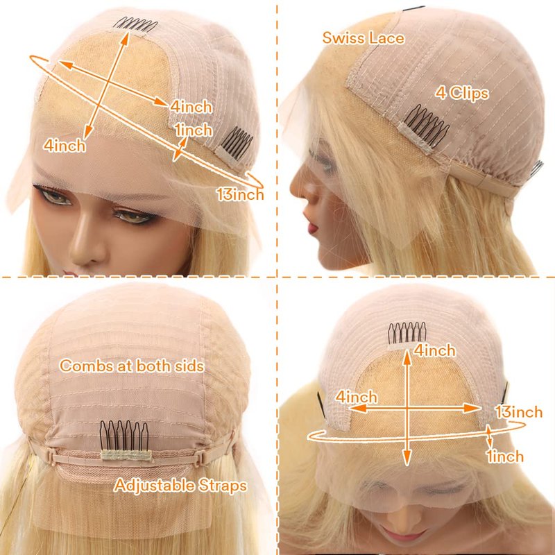 - HIGH QUALITY SWISS LACE: 613 HD lace frontal wig, free part 13x4 613 lace frontal wig and hand-crafted technology, simulated scalp, medium size cap(22-22.5 inch), medium brown lace with a adjustable straps, more comfortable to wear.