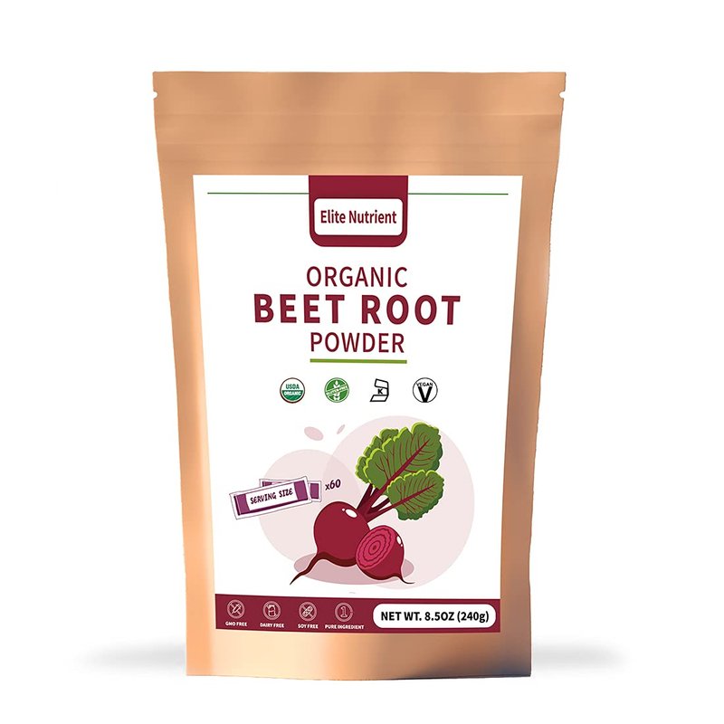 Elite Nutrient Organic Beet Root Powder, Non-GMO, Gluten Free, Vegan Superfood, Nitric Oxide Booster, Increase Stamina & Enhance Exercise Performance (Individual Package)