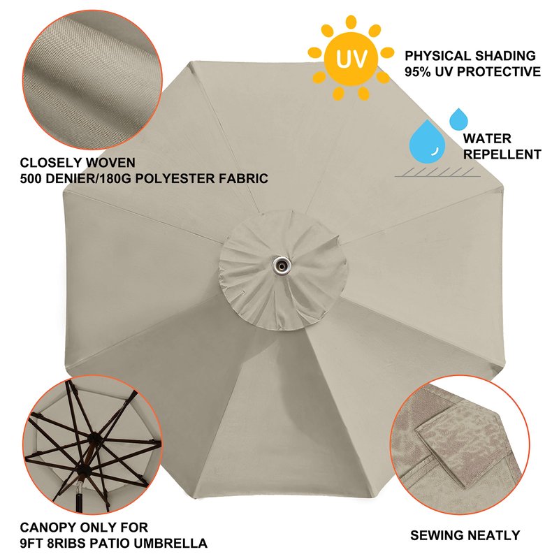 - Replacement umbrella canopy for 9ft 8 ribs patio outdoor umbrella, Replacement Canopy only.