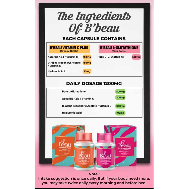Elizkof Beauty Store B'Beau L-Glutathione 500mg and B'Beau Vitamin C Capsule