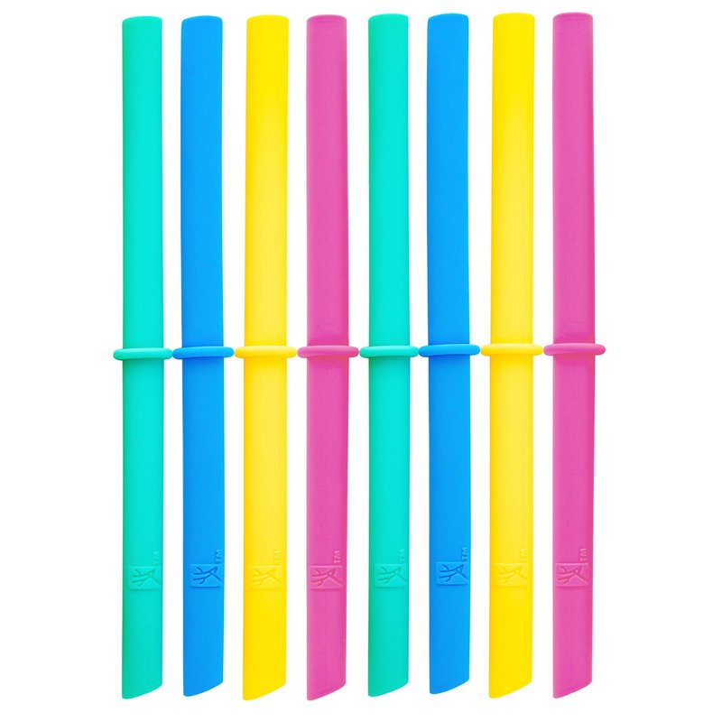 - PACK: This pack includes 8 colorful reusable silicone straws with stopper + Cleaning Brush. Colors - Pink x 2, Teal x 2, Blue x 2 & Yellow x 2