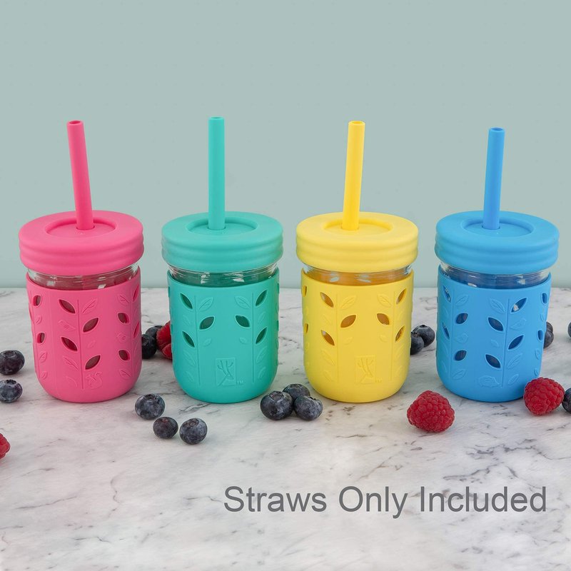 Elk and Friends Adult & Kid's Reusable Silicone Straws with Stopper for 8oz & 10oz Mason Jars or Tumblers, Pack of 8 Colorful Straws 6.3"