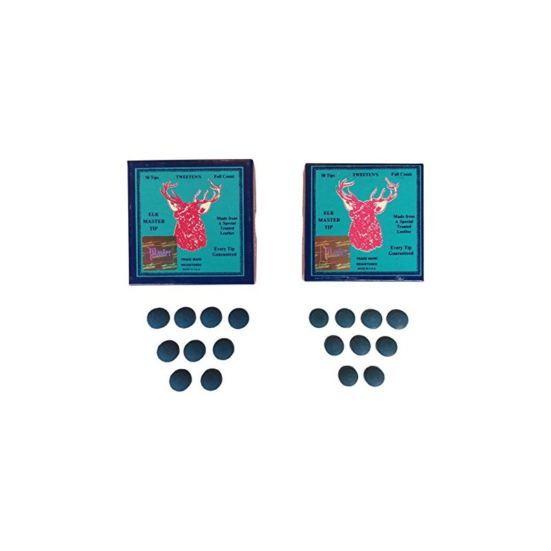 Elk Master Cue Tips Elk Master are the finest cue tips made from special treated leather. This bundle includes 10 pieces of 12mm and 10 pieces of 13mm Elk Master Cue tips. Ideal for home or business.