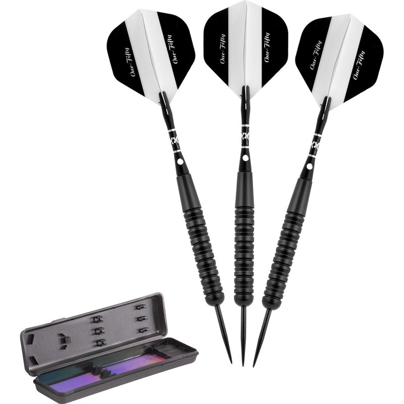 Elkadart unisex adult Elkadart One Fifty Steel Tip Darts with Storage Travel Case 20 Grams, Black, 20g US