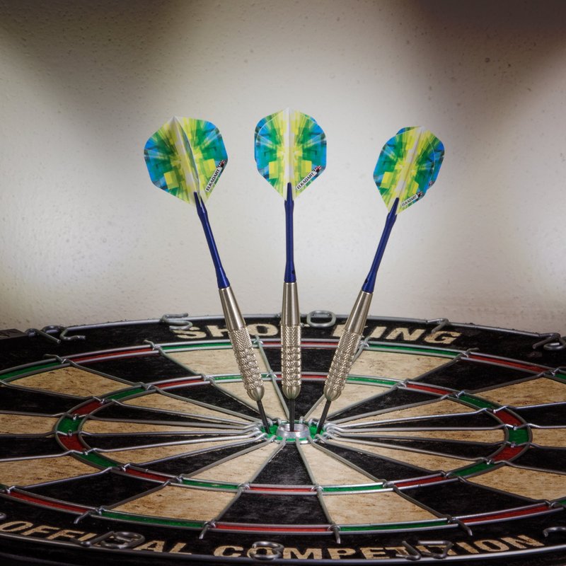 - Quality flights are constructed to help increase speed and reduce drag, delivering a consistent flight path for pinpoint accuracy; Each steel tip dart weighs 22 grams