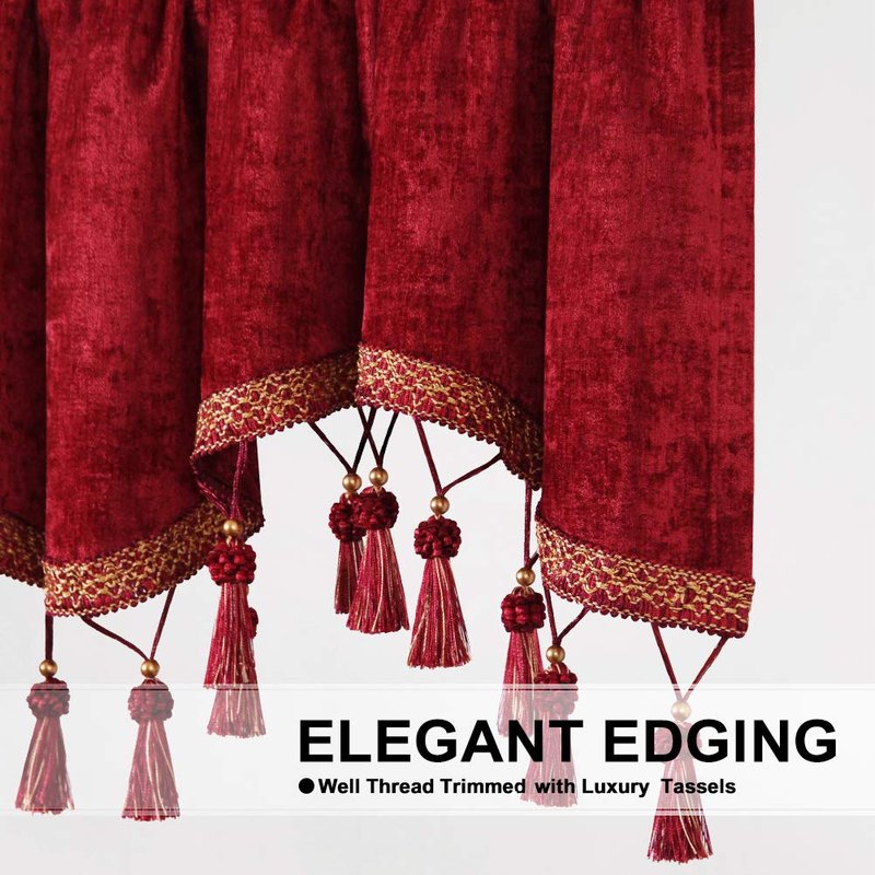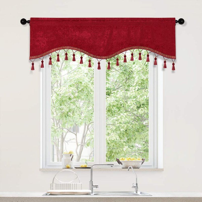 ELKCA Double-Sided Chenille Window Curtains Tier for Kitchen Burgundy Red Scalloped Valance for Living Room,Pack of 1(Burgundy Red, 52" W x 18" L)