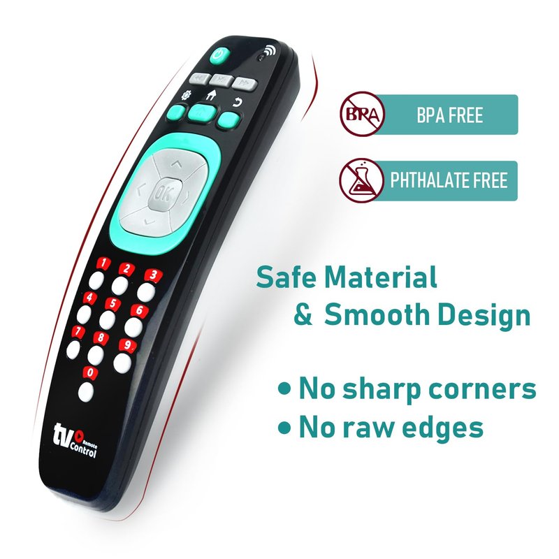 - Baby Remote control toy: Realistic design for babies which is always curious for real remote. Look like a real TV remote control. Buttons on the panel for babies to explore.