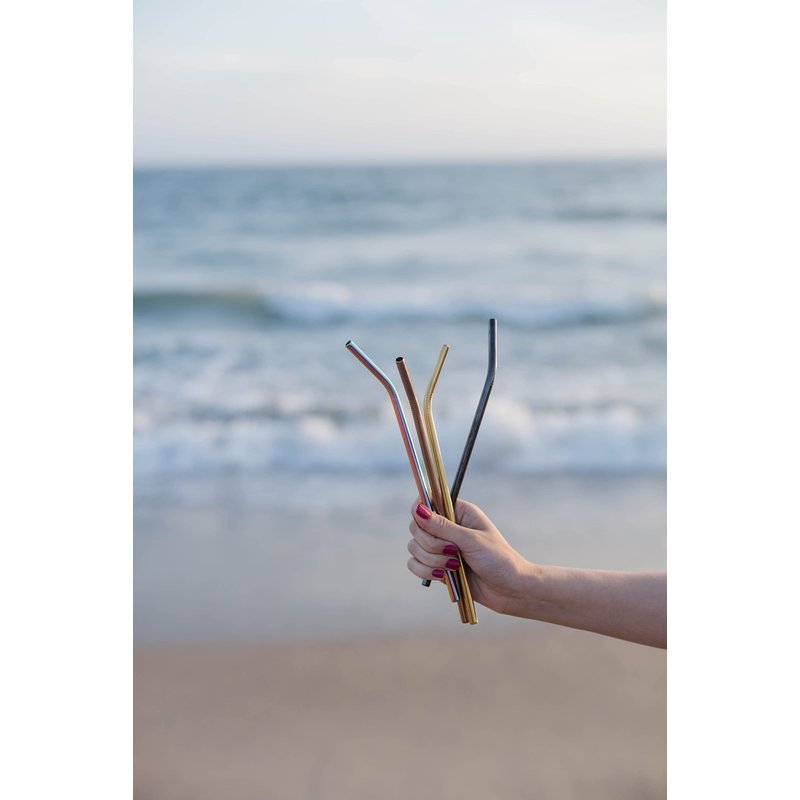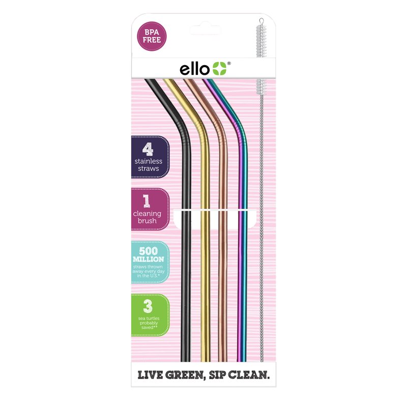 Ello Impact Stainless Steel Reusable Straws with Cleaning Brush, 4 Piece, Metallics