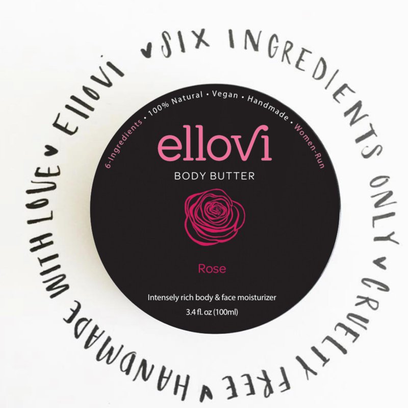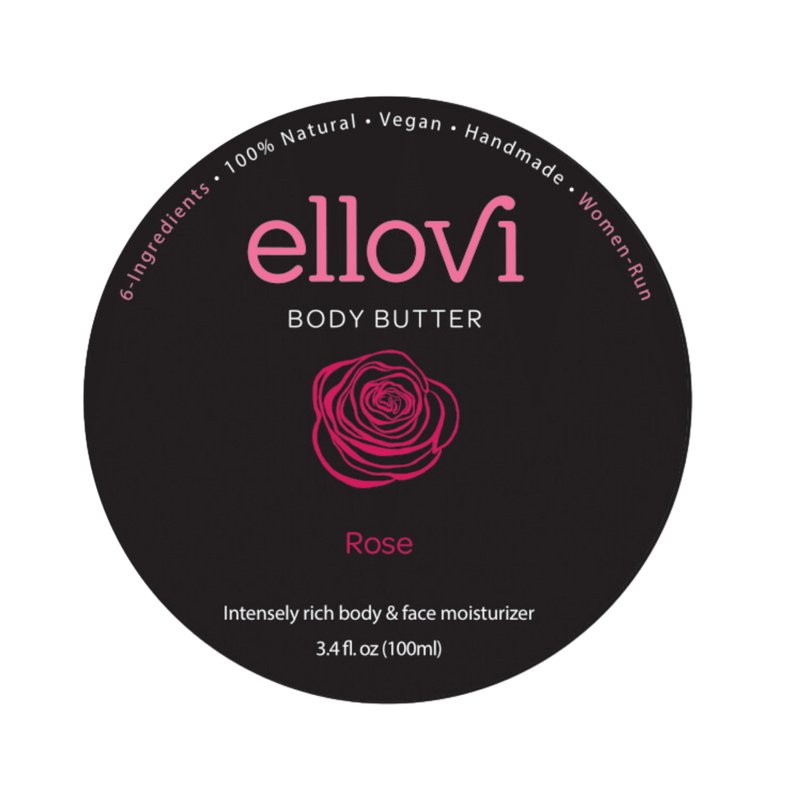 Ellovi All-Natural Body Butter - Rose - Pure Enough to Eat - Made With Just 6 Vegan Ingredients - Ultra-Rich 100% Plant-Based Hydrating Moisturizer For Naturally Healthy Skin