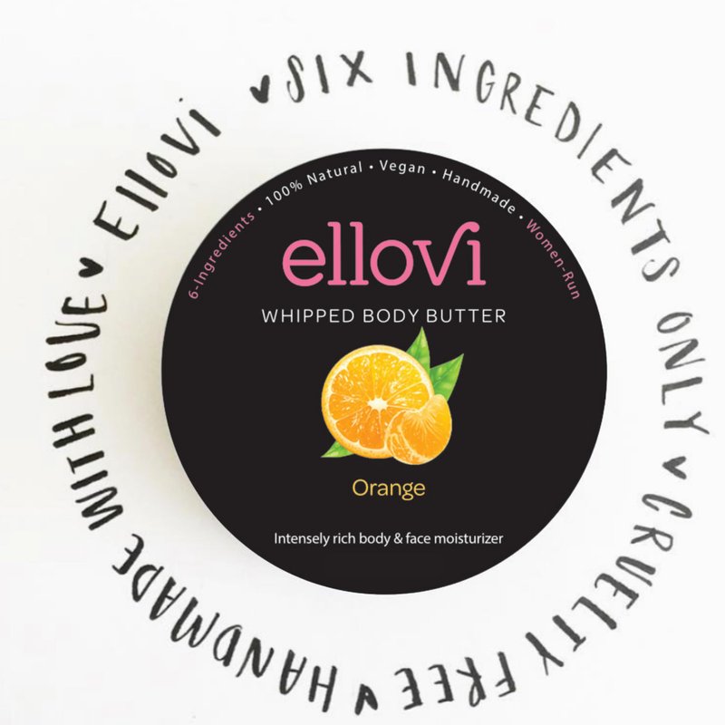 Ellovi All-Natural Luxuriously Whipped Body Butter - Orange - Pure Enough to Eat - Made With Just 6 Vegan Ingredients - Plant-Based Moisturizer For Naturally Healthy Skin (2 fl. oz/59ml)