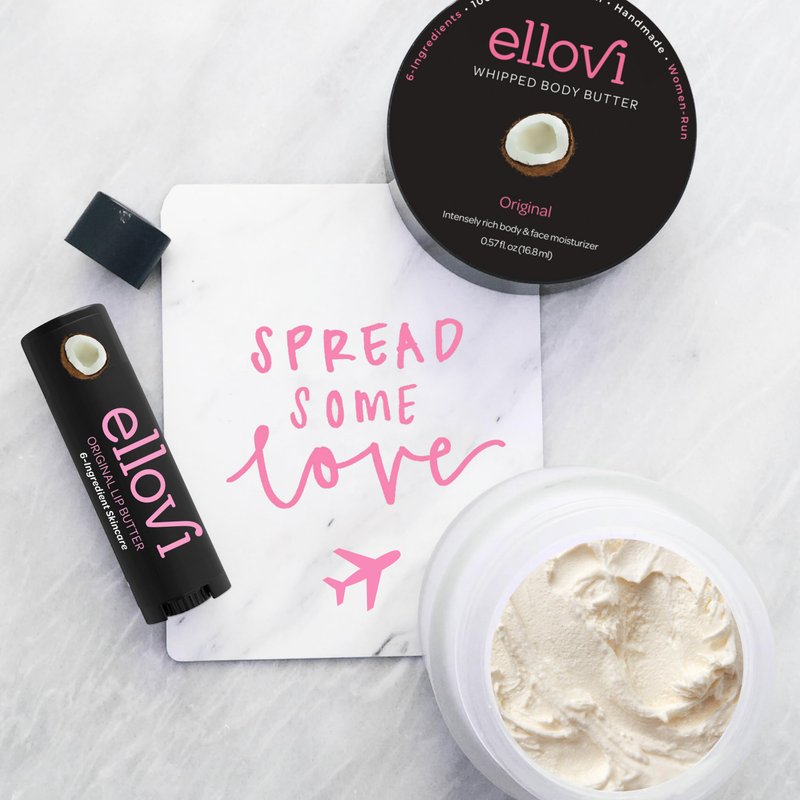Whipped butters elevate their absorption creating a sense of luxury and weightlessness, melting quickly when touching skin for maximum hydration. Experience the clean and lightly invigorating scent of this non-greasy, fluffy butter, perfect for daily use. Ellovi Butter is a 6-ingredient moisturizer that is so pure you could eat it. What's really special about Butter is that we don't add water. That means it's highly concentrated, can't evaporate like other moisturizers, and we don't need preservatives. Butter soaks in deep and moisturizes your skin better from the inside out. Even after washing your hands or bathing, Butter will keep your skin intensely hydrated and nourished for days. Ellovi created Butter because other body butters and moisturizers are full of unnecessary chemicals, parabens, and preservatives created in science labs. Your skin is like one giant sponge, so you've got to protect it from soaking in the bad stuff. Ingredients: Macadamia Butter (Omega 7), Shea Butter, Coconut Oil, Arrowroot Powder, Jojoba Oil, Orange Essential Oil