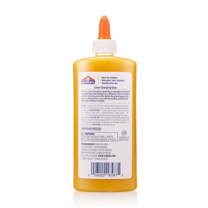 Elmer's Color Changing Liquid Glue, Great for Making Slime, Washable, Yellow to Red, 9 Ounces