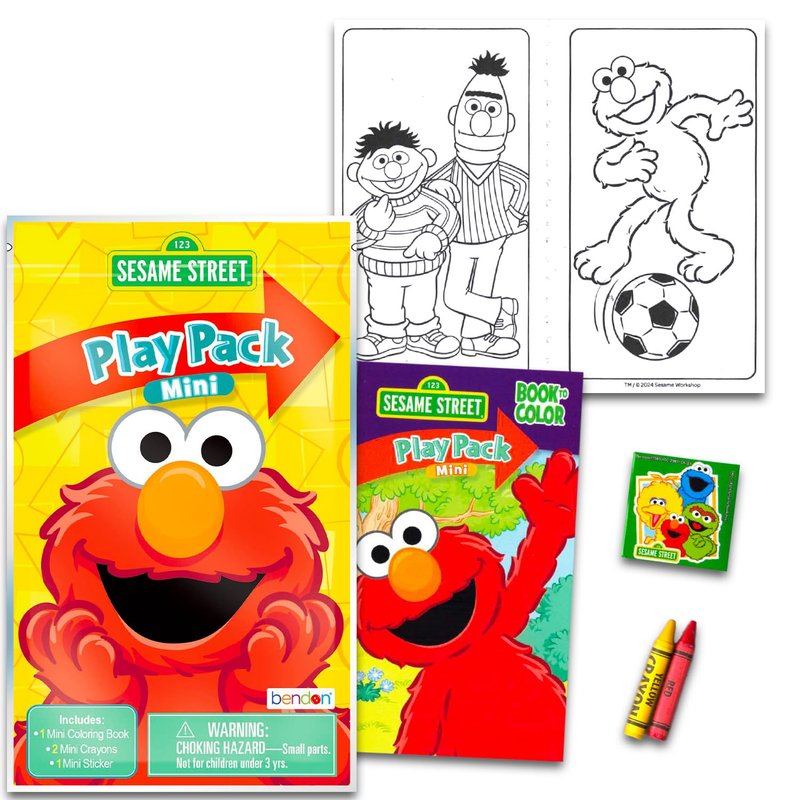 - This Elmo party supplies set features 24 mini Grab n Go Play Packs which each include a miniature coloring book, stickers, and coloring utensils.