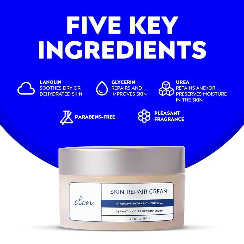 Elon Skin Repair Cream | Hydrating Cream for Hands & Body | Dermatologist Recommended (5 oz)