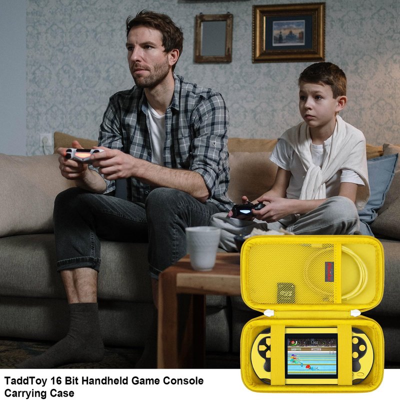 - 【Perfect Fit】【Specially Designed for TaddToy 16 Bit Handheld Game Console】--This handheld game console carrying case is specially designed for taddtoy 16 bit handheld game console. Internal space 1:1 build, perfectly fit for taddtoy 16 bit handheld game. extra mesh pocket for charging cables. (CASE ONLY! TaddToy 16 Bit handheld game and accessories are not included)