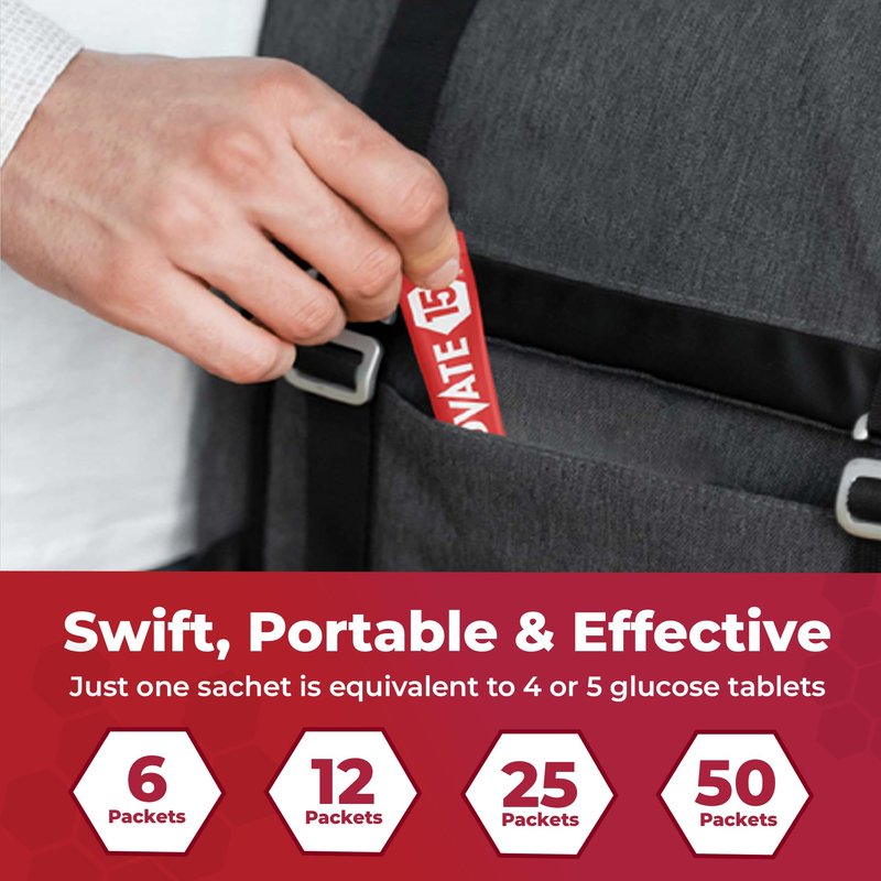 - PORTABLE PACKETS: Each Elovate 15 packet is designed for portability, making it easy to carry in your pocket, purse, or backpack. The slim, waterproof packaging ensures you have a glucose source on hand, no matter where you are. Whether at the gym, traveling, or on the go, these packets offer a convenient solution for maintaining your energy levels.