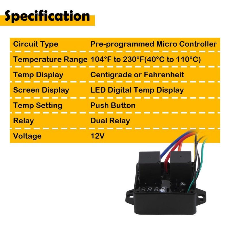 - Dual-Fan Operation: Controls one or two fans; the second fan activates 10 seconds after the first for efficient cooling. Also runs when the air conditioning is on