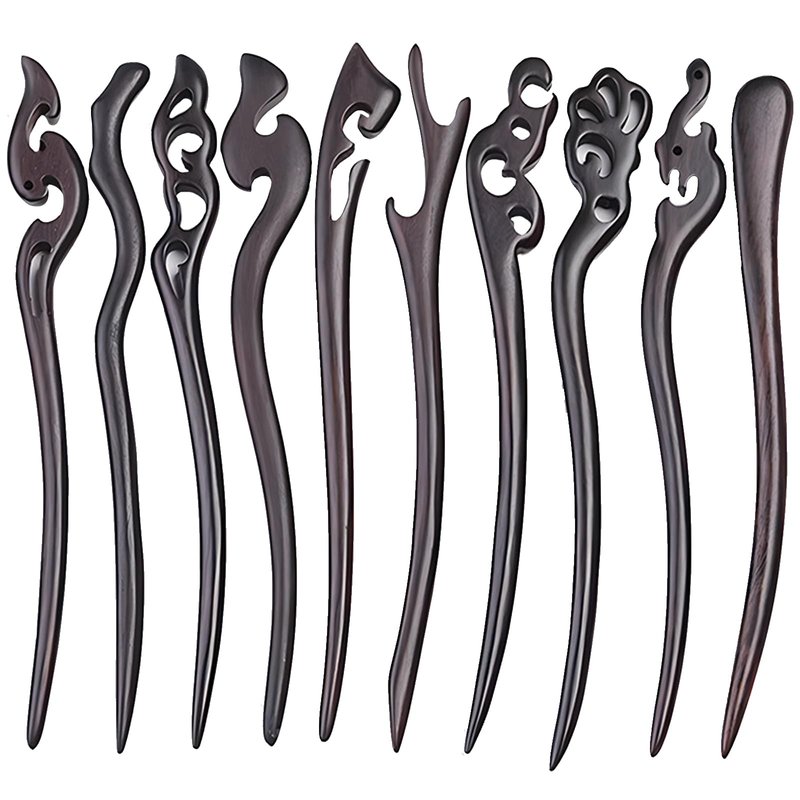 - 【10 Pieces in Package】Package includes 10 Pcs of beautifully hand-carved hair sticks, each one has a different charming design