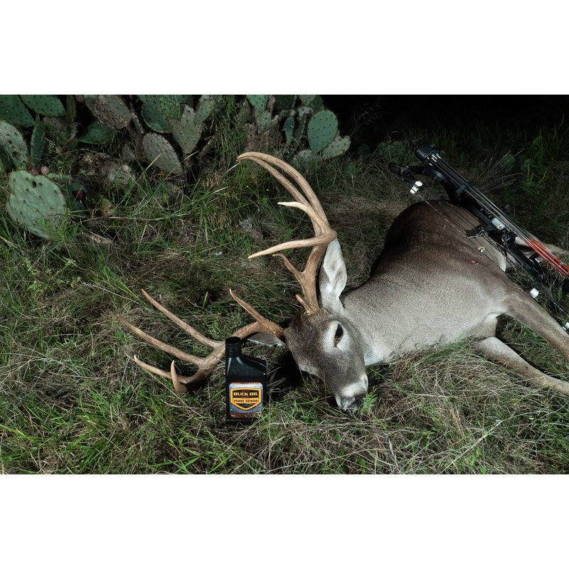 Deer live and die by their noses! Elusive Wildlife's new BUCK OIL is formulated to create a highly attractive, palatable aroma that deer just can't resist! Easy to use, simply pour BUCK OIL on corn, stumps, logs, virtually anything a deer may eat, lick or rub on. Attracts all species of deer and keeps them coming back!