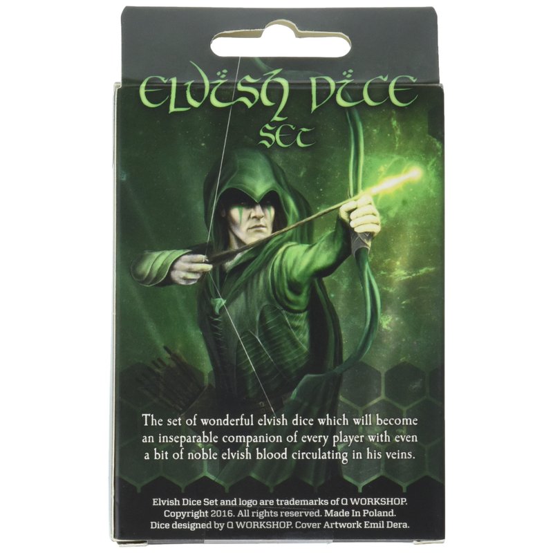 - Q WORKSHOP dice are manufactured in Poland, European Union. This set belongs to our bestseller product series of the Elvish dice. You can find them in many colors and versions.