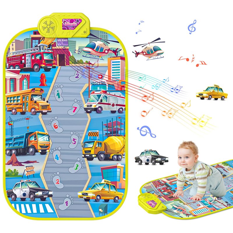 - 【Easy to Play】The kids music mat has 9 notes, 8 construction machinery sounds and an "on/off" button to change modes, Rich music that simulates construction vehicle sounds. And there is also a recording function to record the music that the kids create themselves.