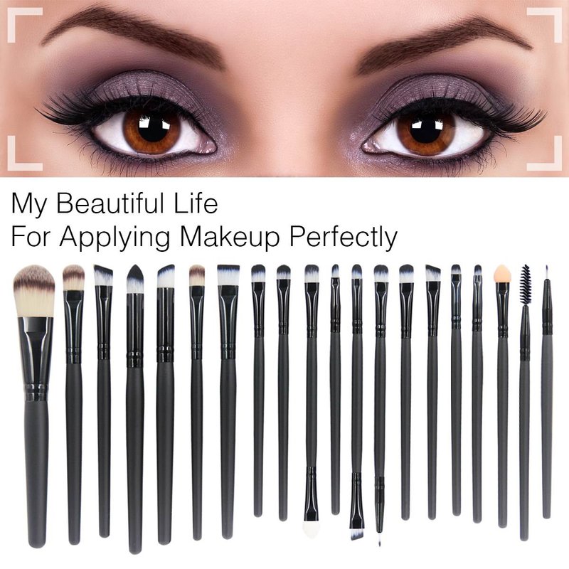 - These essential eye brushes are ideally for liquids, powders, or creams to produce a beautiful eye makeup application. The set includes eye shadow brush, foundation brush, eyeliner brush, mascara brush, lip brush, concealer brush, eyebrow brush for daily use.