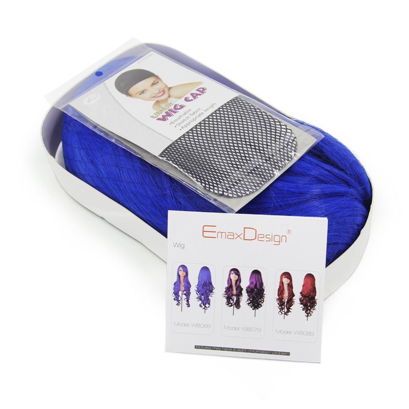 EmaxDesign Wigs 32 inch Wavy Curly Cosplay Wig With Wig Cap and Comb (Dark Blue)