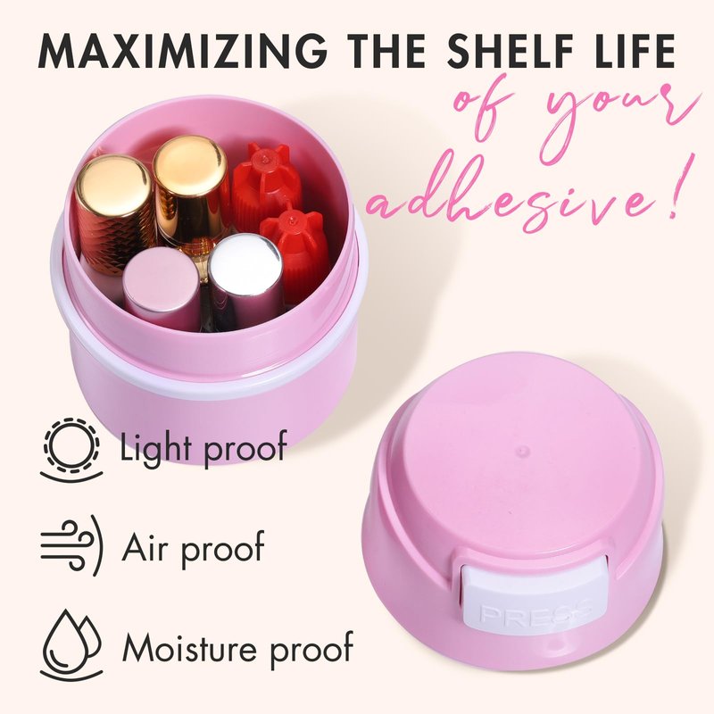 Embagol Eyelash Glue Storage Container Eyelash Storage Container Tank Eyelash Extensions Adhesive Jar Stand Makeup Case Cosmetic Storage Tank for Women Pink
