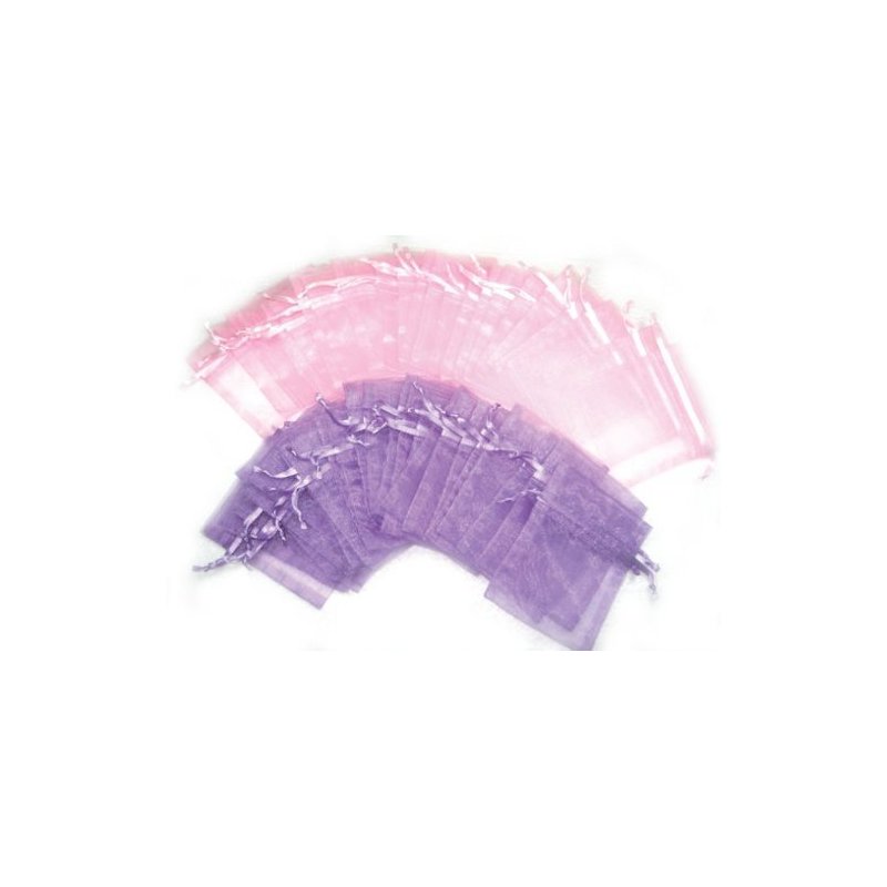- 25 Pink and 25 Purple organza bags with drawstring - Total of 50 bags