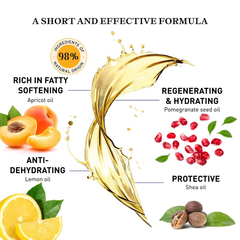 - Multi-Purpose Nourishment: Enriched with active plant oils, this dry oil protects and beautifies skin and hair; Infused with Shea, Pomegranate, Lemon, and Apricot
