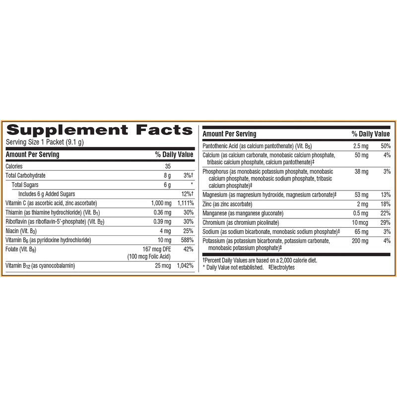 Emergen-C 1000mg Vitamin C Powder for Daily Immune Support Caffeine Free Vitamin C Supplements with Zinc and Manganese, B Vitamins and Electrolytes, Super Orange Flavor - 30 Count