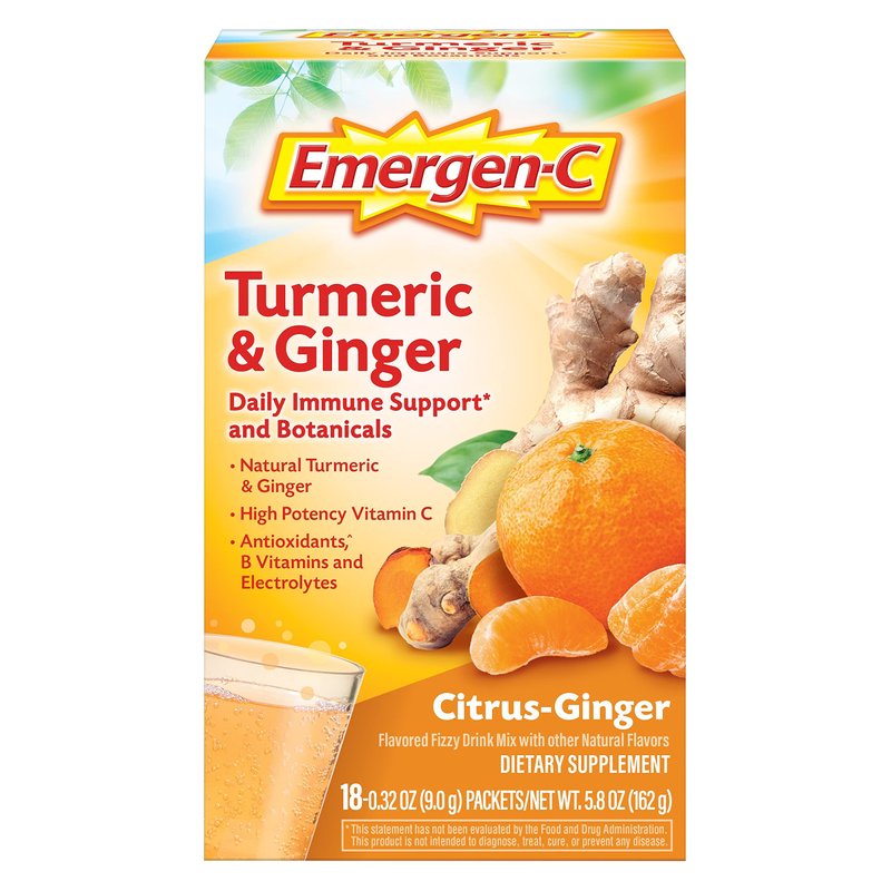 - Emergen-C Turmeric & Ginger fizzy drink mix provides immune system support with the natural goodness of botanicals