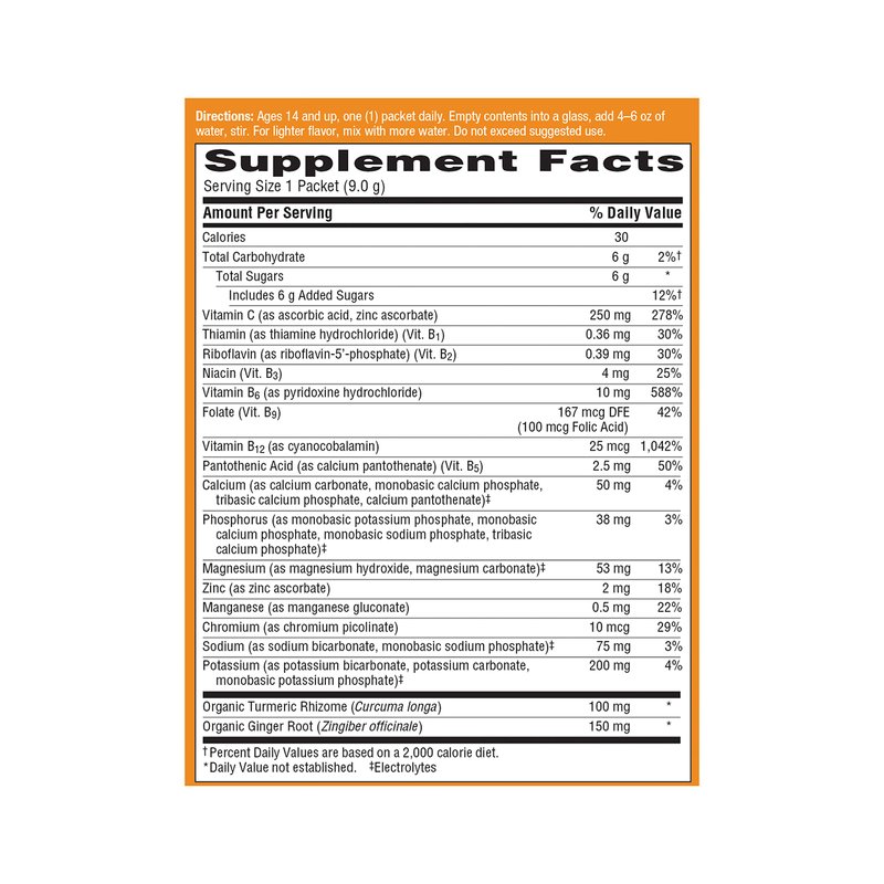- This citrus-ginger drink mix supports your immunity with high potency vitamin C, antioxidants Zinc and Manganese, and B vitamins to naturally enhance your energy