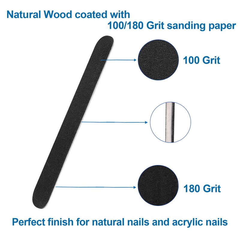 - Upgraded Natural Wood Emery Boards Materials: Each disposable wooden fingernail file is crafted with top-quality sandpaper and a wooden stick, ensuring a hygienic and healthy nail care experience. Our nail files are washable and constructed with high-grade emery board and adhesive tape for extended durability, offering effective nail shaping and smoothing process. This user-friendly fingernail fines ensures optimal nail care results without causing any damage.