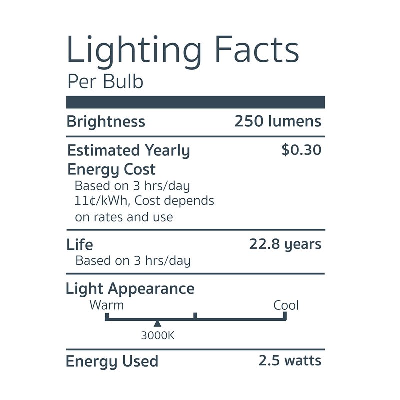 - ENERGY SAVING: An Energy Efficient Alternative to Incandescent E12 Base Lamps with Similar Light Output to a 120v, 20w Incandescent (250lm) and is Suitable for Use in Most 120v E12 Base Fixtures