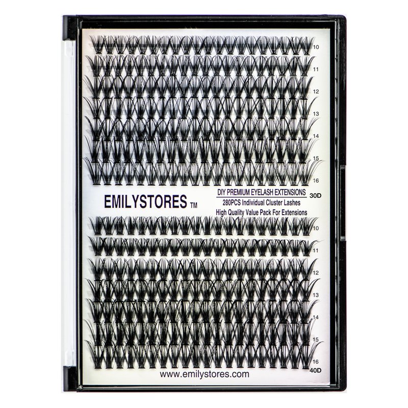 EMILYSTORES Lashes Extension Kit DIY 280pcs Lash Clusters Eyelash Extension Kit, 10-16mm Mix Sizes 80D Fluffy D Curl Individual Lashes Kit for DIY Eyelashes (80D Fluffy)