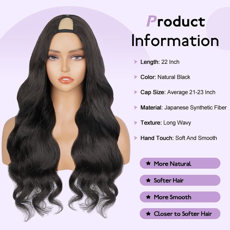 Emistar Wavy V Part Wig Wear And Go Glueless U Part Wig Body Wave Natural Black Synthtic Hair Soft As Human Hair Wigs For Black Women (Natural Black, 24 Inch)