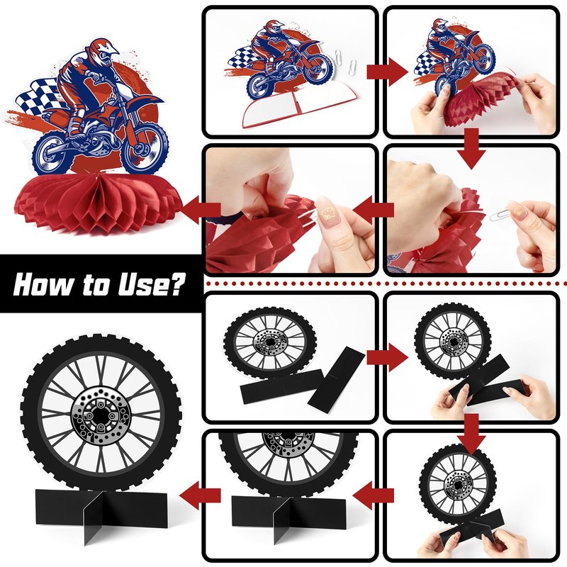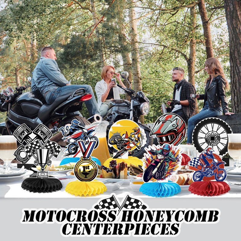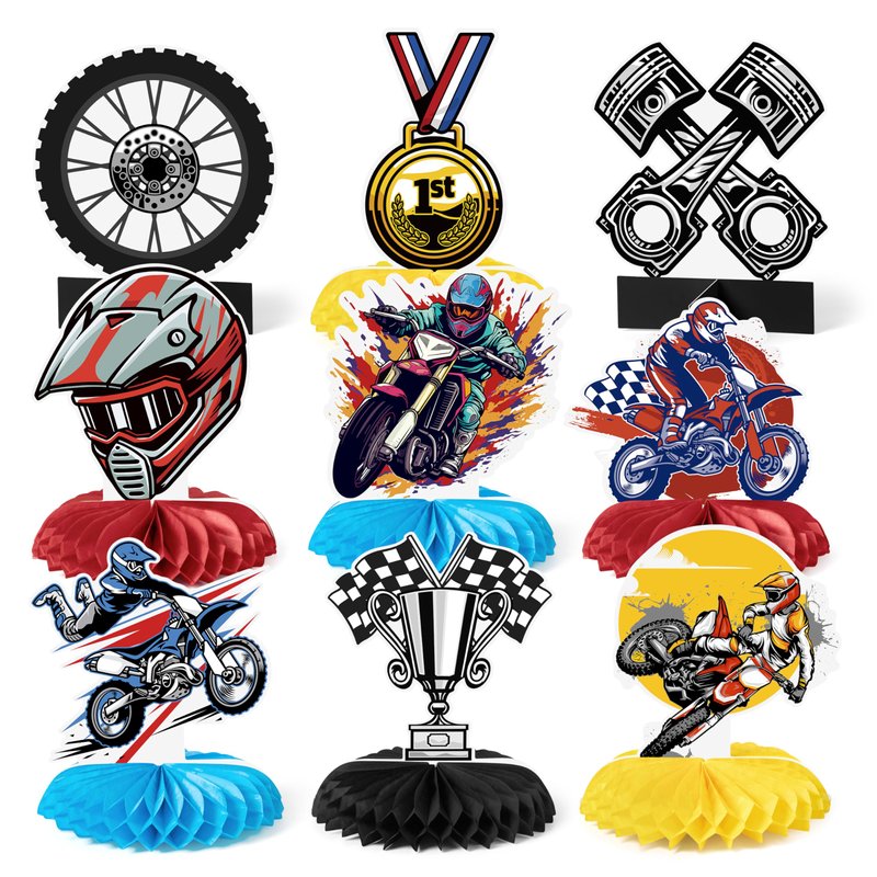 - Unique Designs: Each centerpiece features high-quality, vibrant prints of motorcycles and motocross-themed graphics that add depth and a professional touch to your table setup.