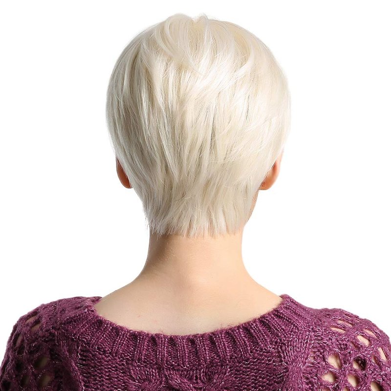 - 【Pixie Cut Wig 】---This women full wig is pixie cut short human hair wig with bang. Color is white.This wig use special technology to mix real human hair and high quality healthy synthetic memory fiber to make the style last longer . Perfect for daily use, holiday, costume party, cosplay,carnival and christmas.Xmas