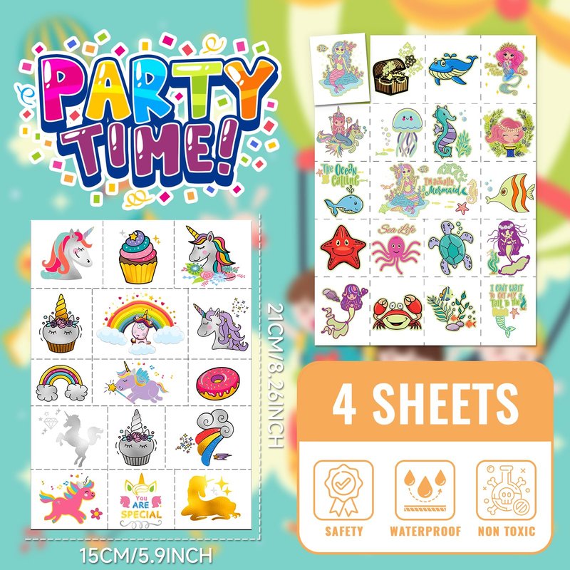 - 【Premium and safety】Our temporary tattoo stickers are made with safety and meet FDA standards. They are made from environmentally friendly materials designed to prevent skin irritation and allergies, ensuring a fun experience for your little ones. Plus, the hot stamping process gives them a cool, shiny look.