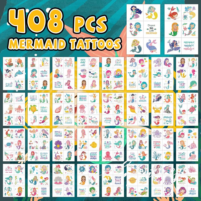 EMOME 408 Mermaid Temporary Tattoos Girls, Glitter Tattoos for Kids Waterproof, Birthday Party Favors Supplies Great for Girls Party Accessories Goodie Bag Stuffers Party Fillers